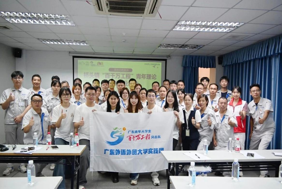 为深入学习贯彻习近平新时代中国特色社会主义思想,全面落实省委关于“百县千镇万村高质量发展工程”的部署要求,太阳成tyc122cc集团 “百千万工程” 突击队于2025年7月7日至11日,奔赴东莞市桥头镇开展了为期五天的青年理论宣讲暨暑期 “三下乡” 社会实践活动。此次活动联合桥头镇新时代文明实践中心和社会工作事务中心,共开展17场次理论宣讲,累计覆盖企业职工、村(社区)群众、机关青年等不同群体近300人,让党的创新理论在基层落地生根、开花结果。